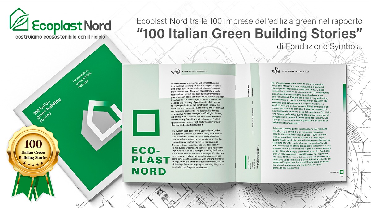 Nel 2022 Ecoplast Nord è stata selezionata tra le “100 Italian Green Building Stories” di Fondazione Symbola e Fassa Bortolo, con il supporto tecnico di PPA. Un riconoscimento di grande prestigio che inserisce l’azienda tra le migliori realtà italiane impegnate nella transizione verso l’edilizia sostenibile. Il sistema massetto Ecoplast Nord è stato individuato come una delle best practice più significative nella categoria Materiali sostenibili – partizioni orizzontali. Questo risultato conferma il valore delle soluzioni dell’azienda e la capacità di coniugare tecnologia, sostenibilità, innovazione, responsabilità sociale